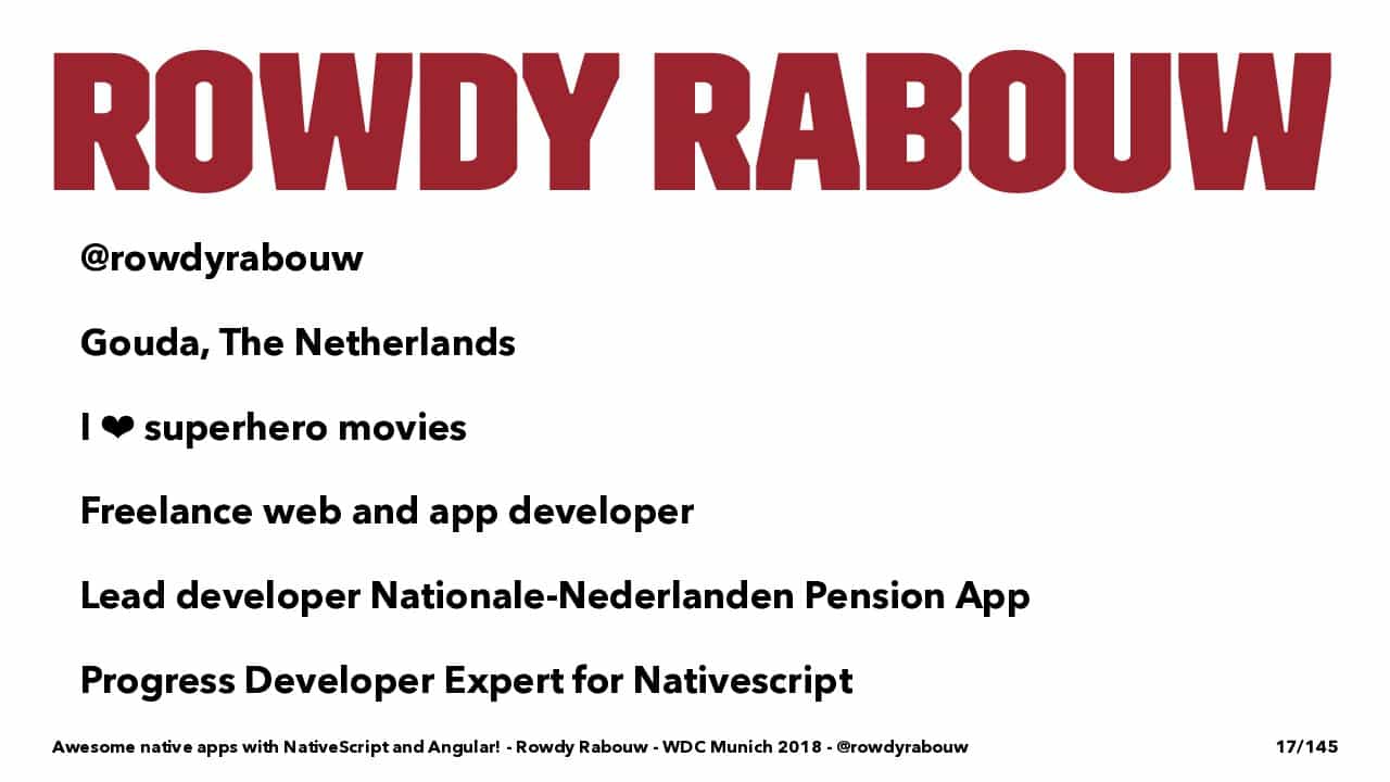 β Web Developer Conference (@wdc_conference) May 22, 2018Speaker-Tipp: @RowdyRabouw und βSuperwoman #NativeScriptβ - Informativ, sympathisch und unterhaltsam πͺπ».@wdc_conference #webDC18 pic.twitter.com/EgnQ6I82fU