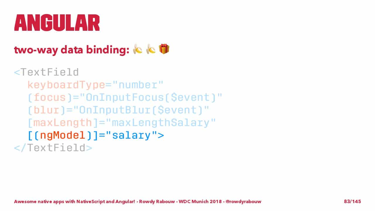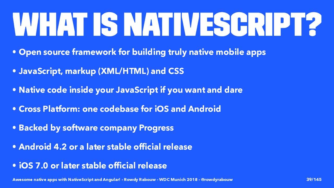 β erminas GmbH (@erminas_de) October 17, 2018Awesome Native Apps with @NativeScript and @angular by @RowdyRabouw at @wdc_conference #webdc18 #angular pic.twitter.com/b8yIIx0nLb