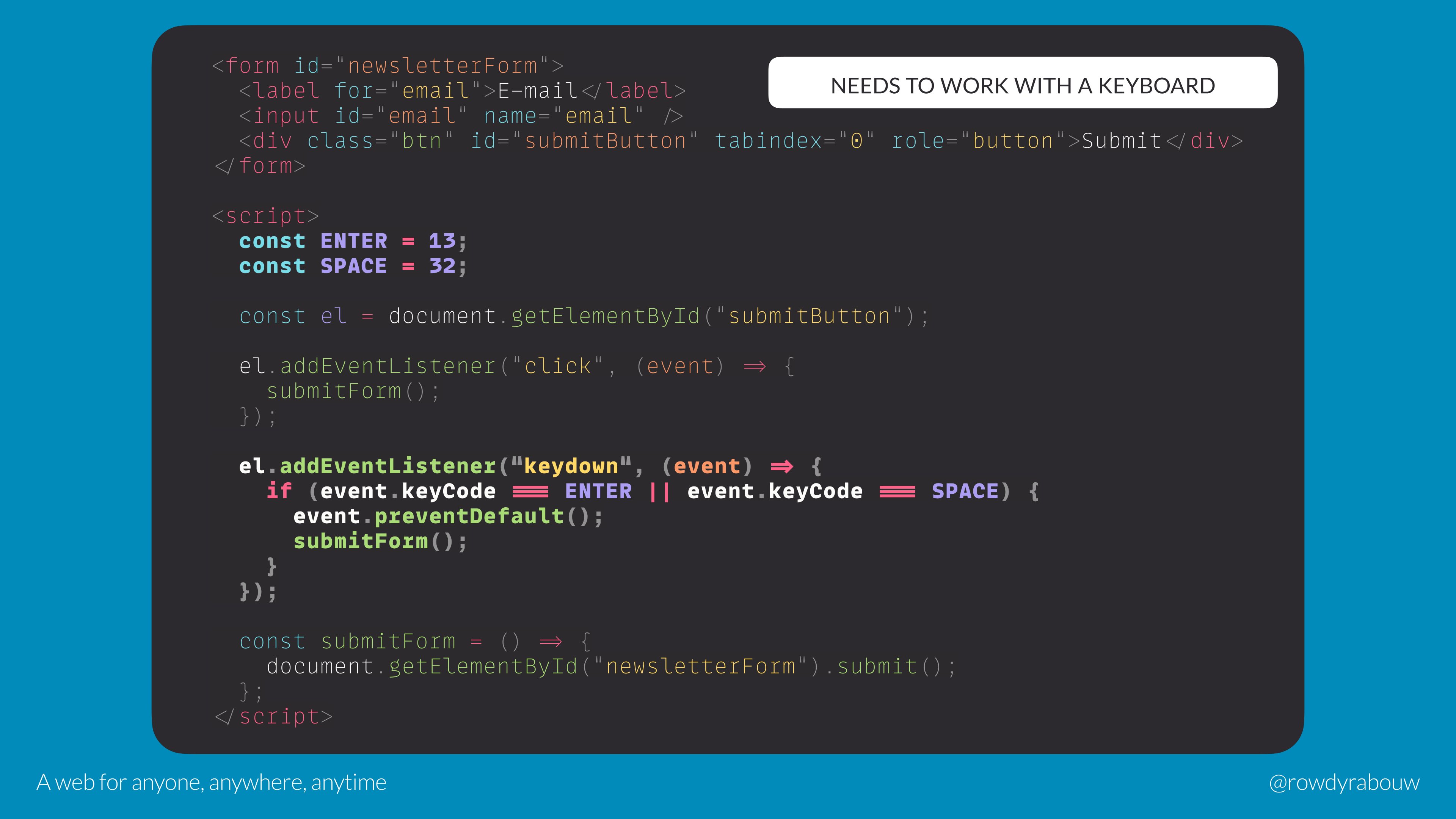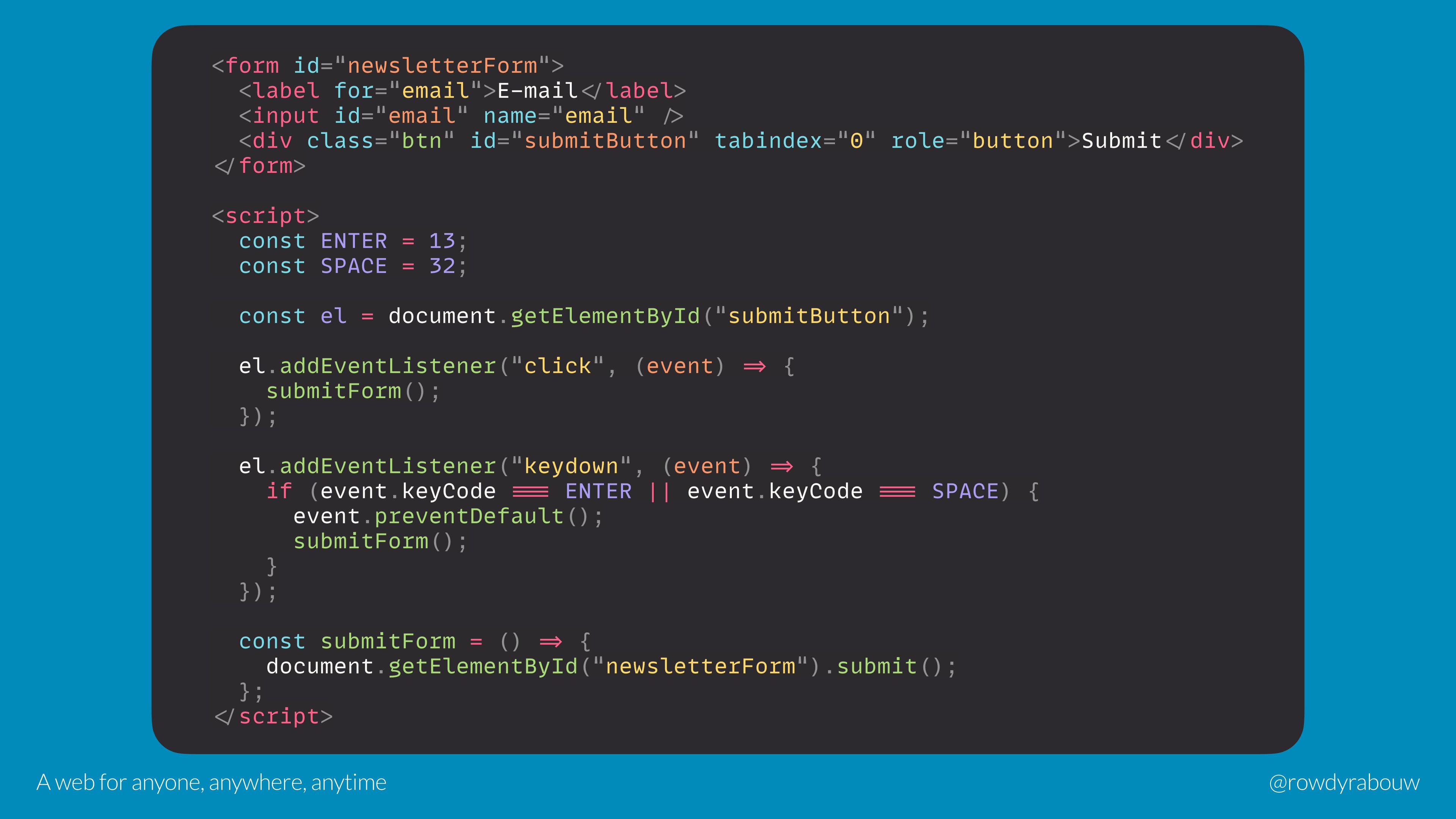 The web is designed to be accessible by default, but we developers made a mess of it along the way. We exclude a large group of people while the web is such an intrinsic part of our daily lives.
