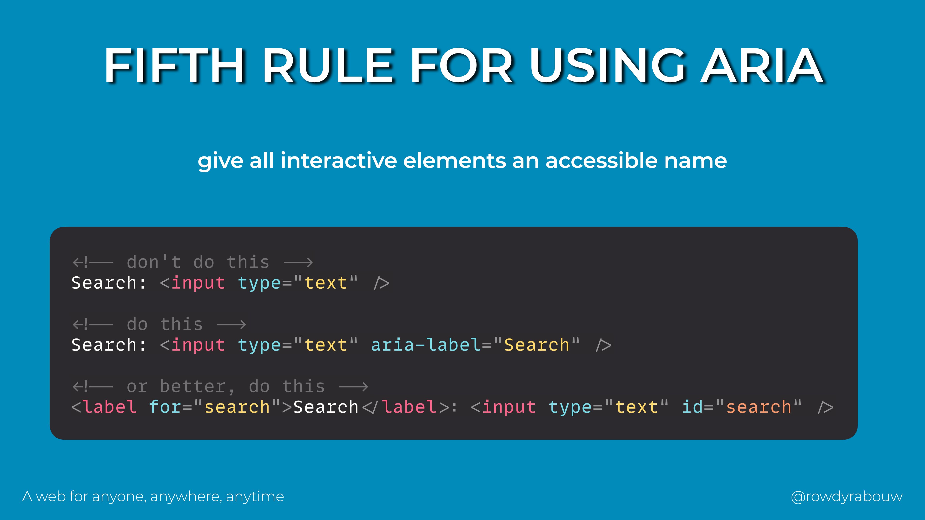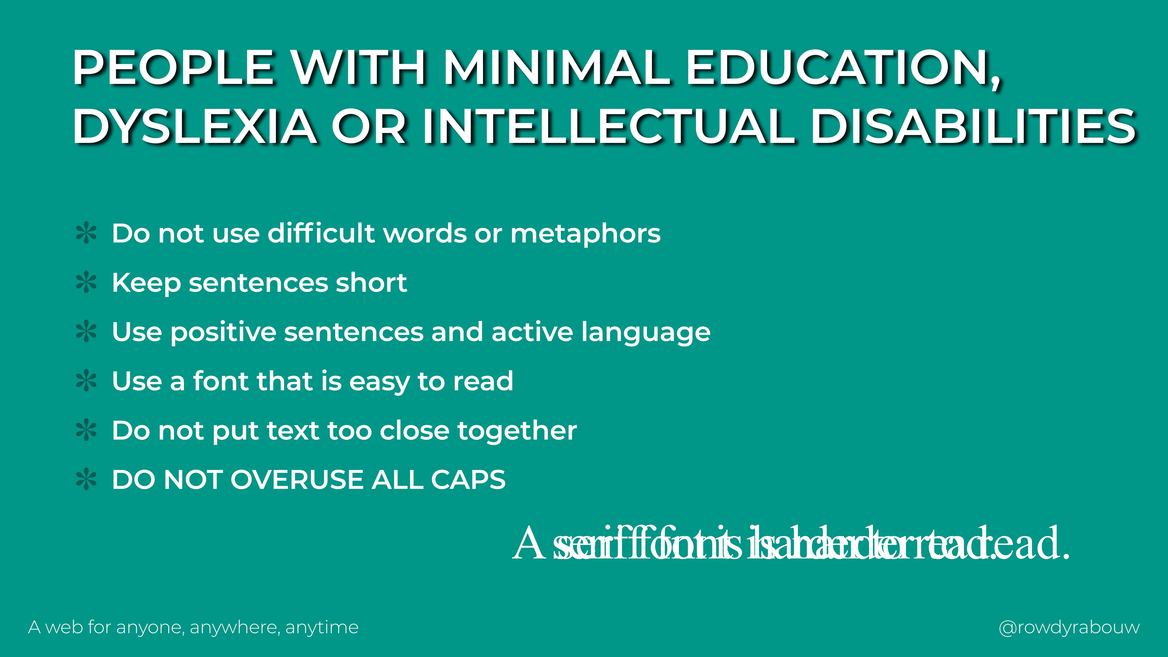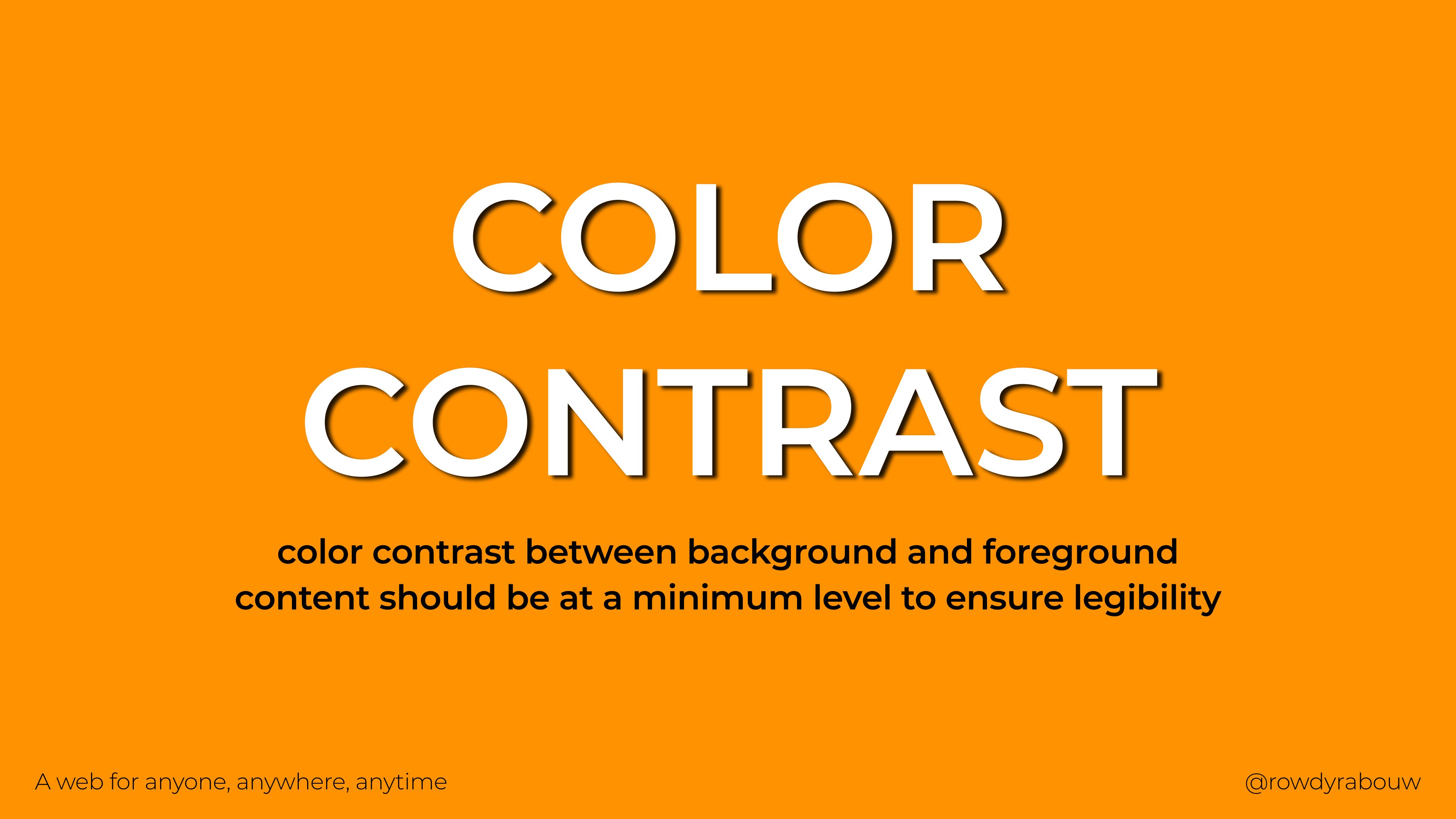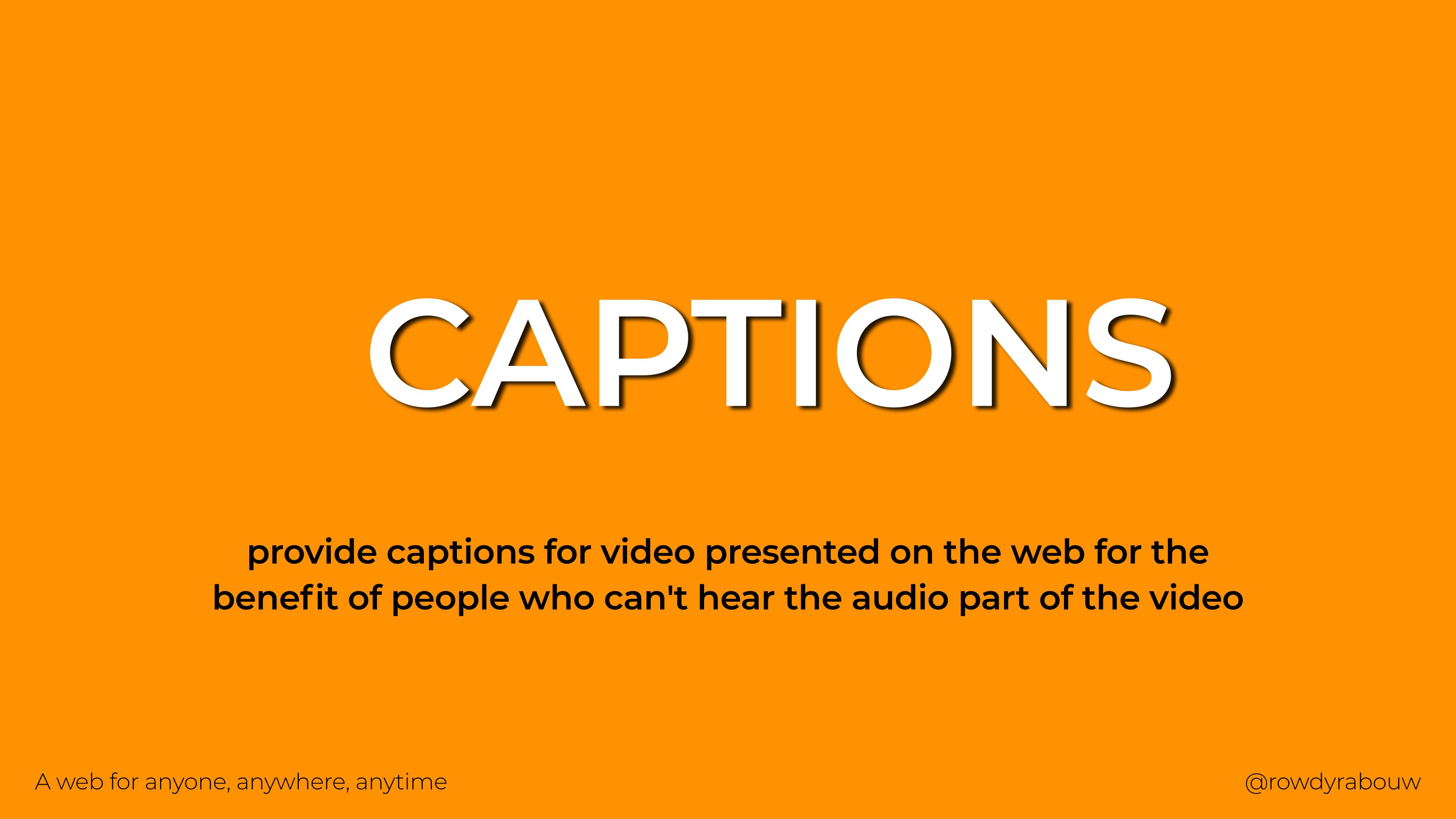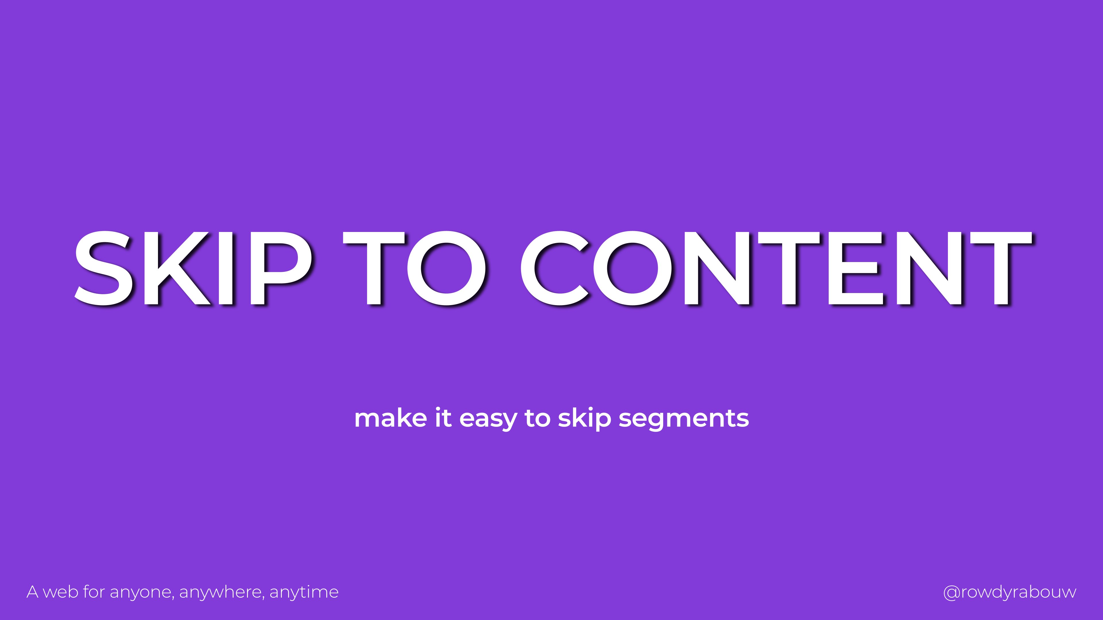 In this talk, Rowdy will go over common mistakes and show solutions to improve your website for persons with disabilities. He will also show practical examples to make websites more enjoyable and usable for everyone, based on their current situation.
