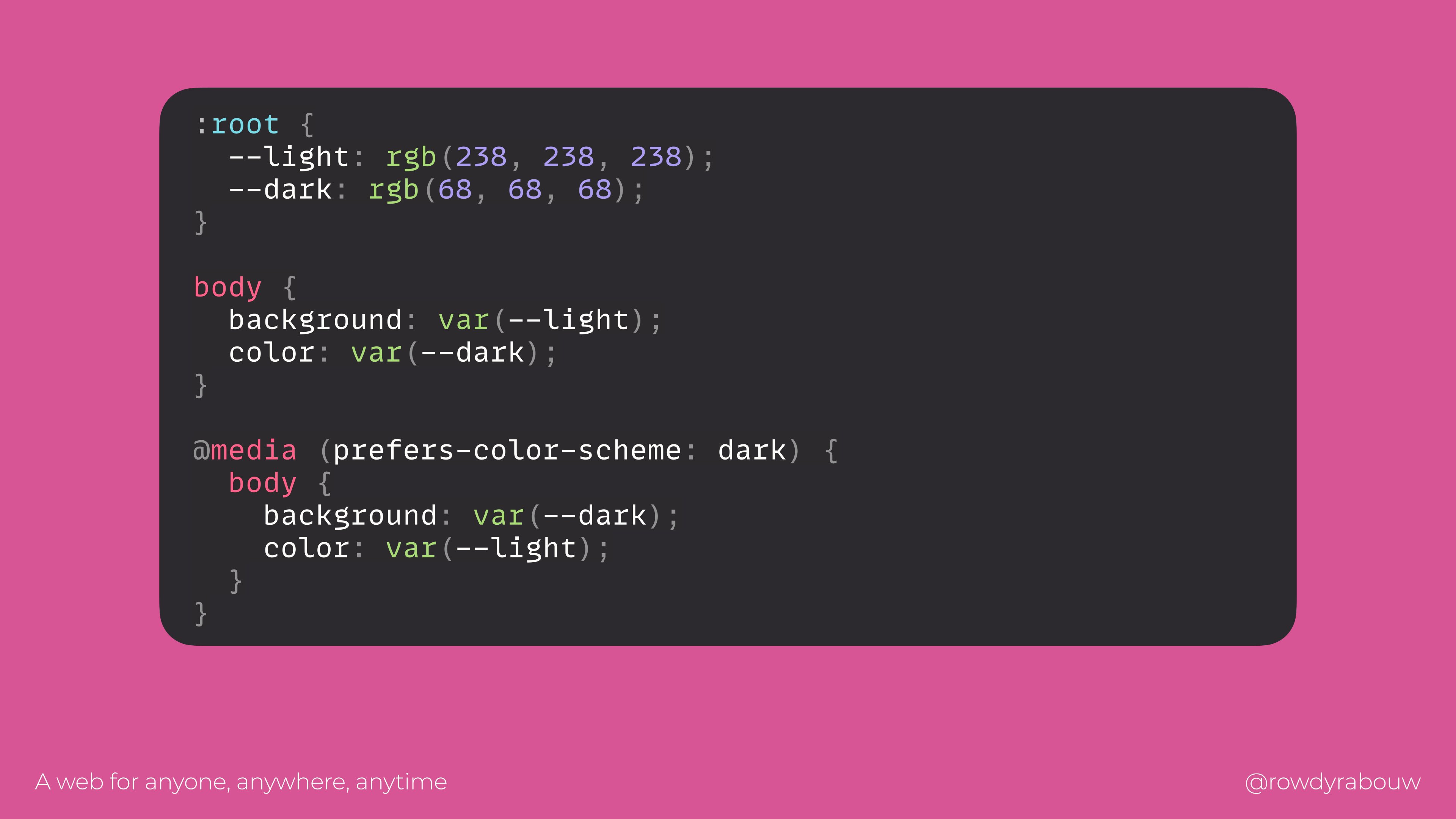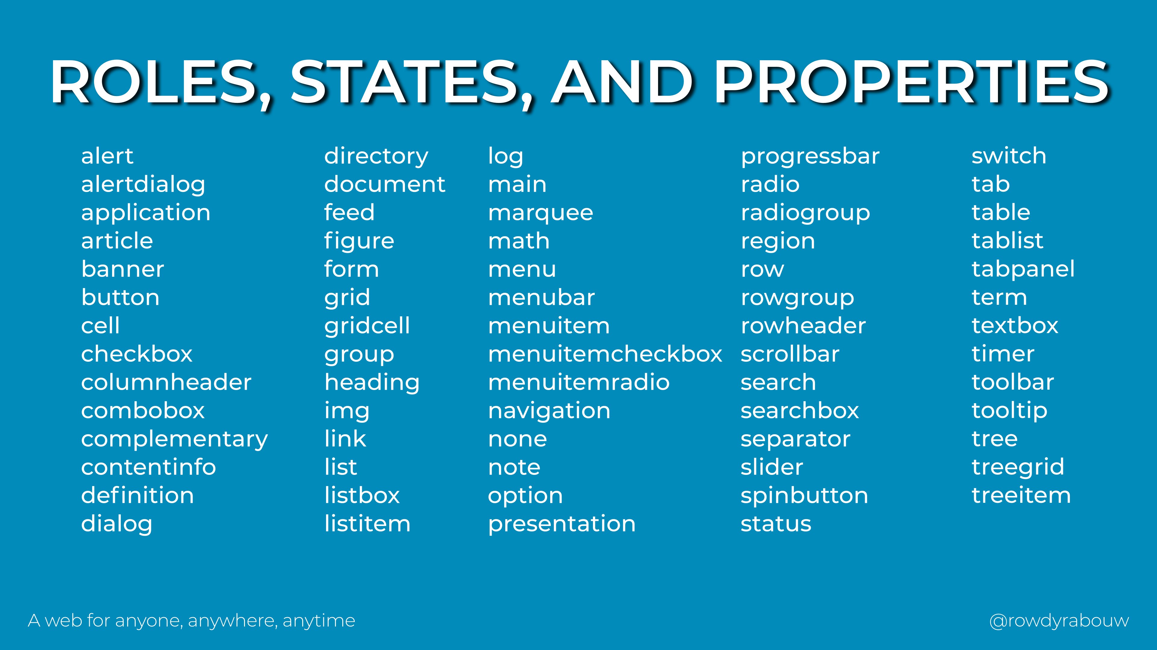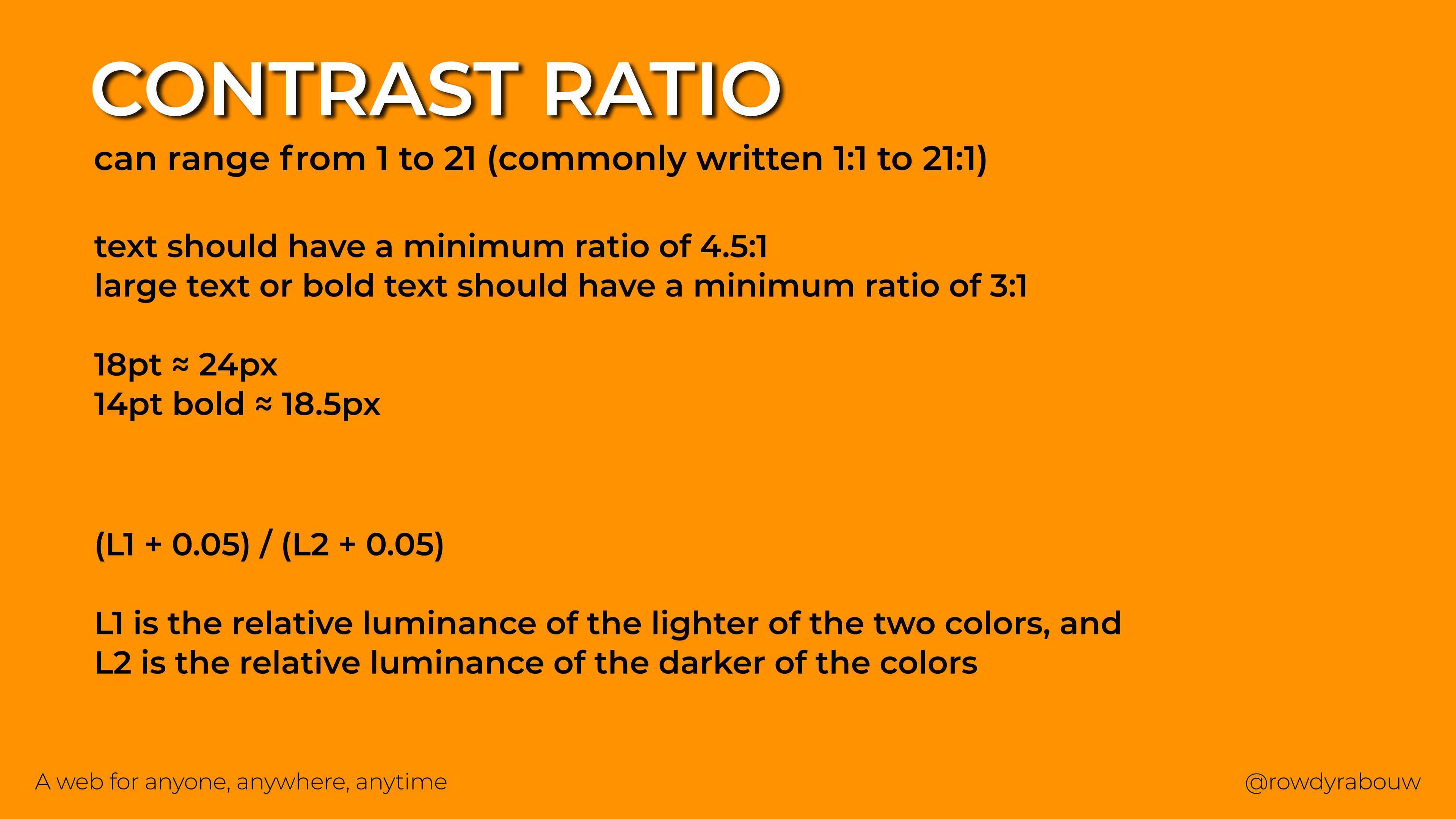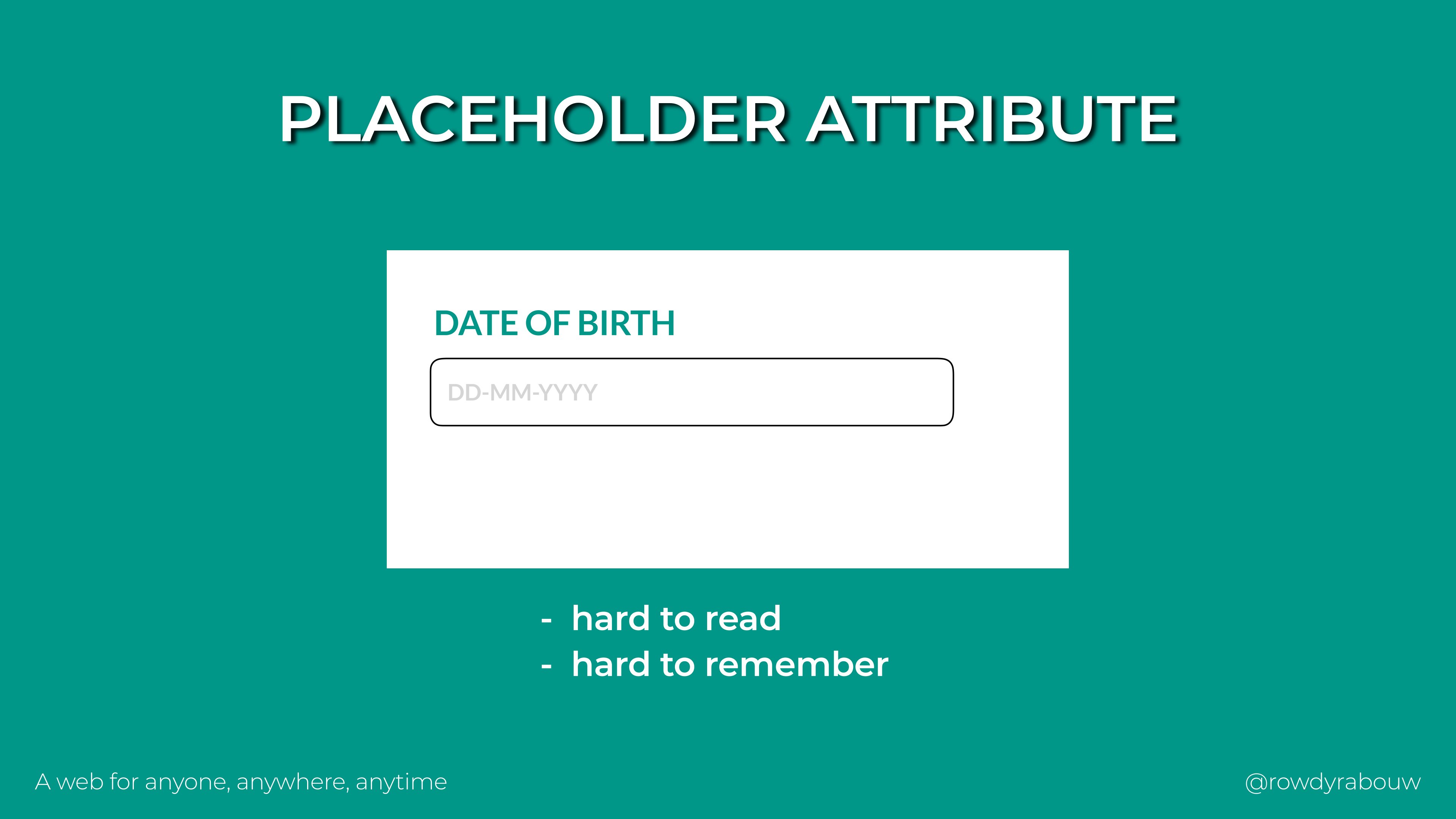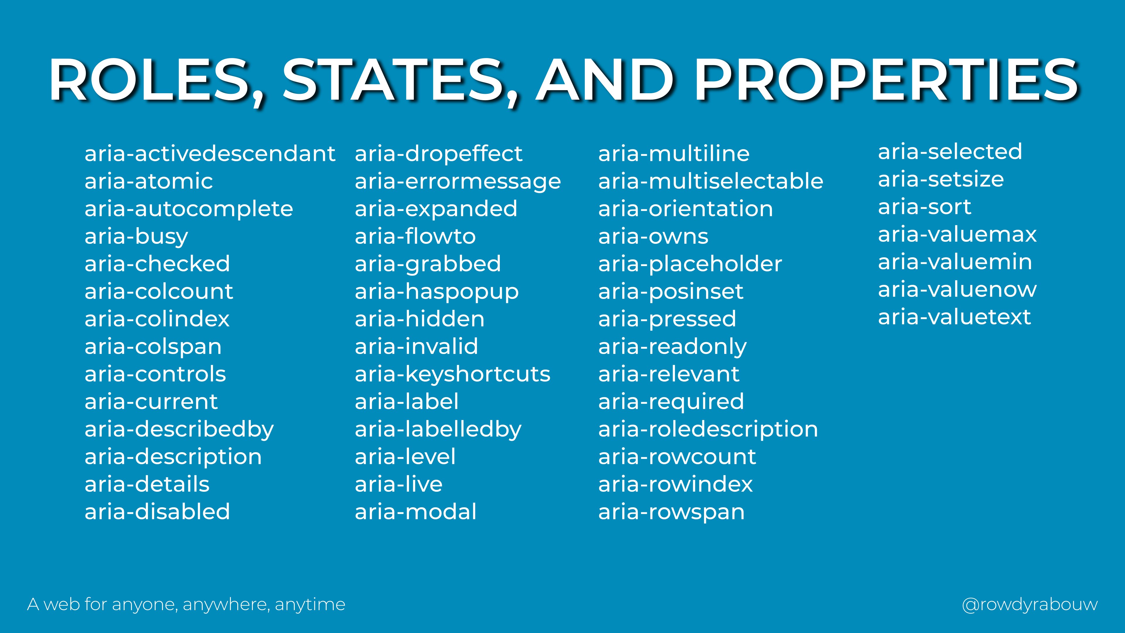 In this talk, Rowdy will go over common mistakes and show solutions to improve your website for persons with disabilities. He will also show practical examples to make websites more enjoyable and usable for everyone, based on their current situation.