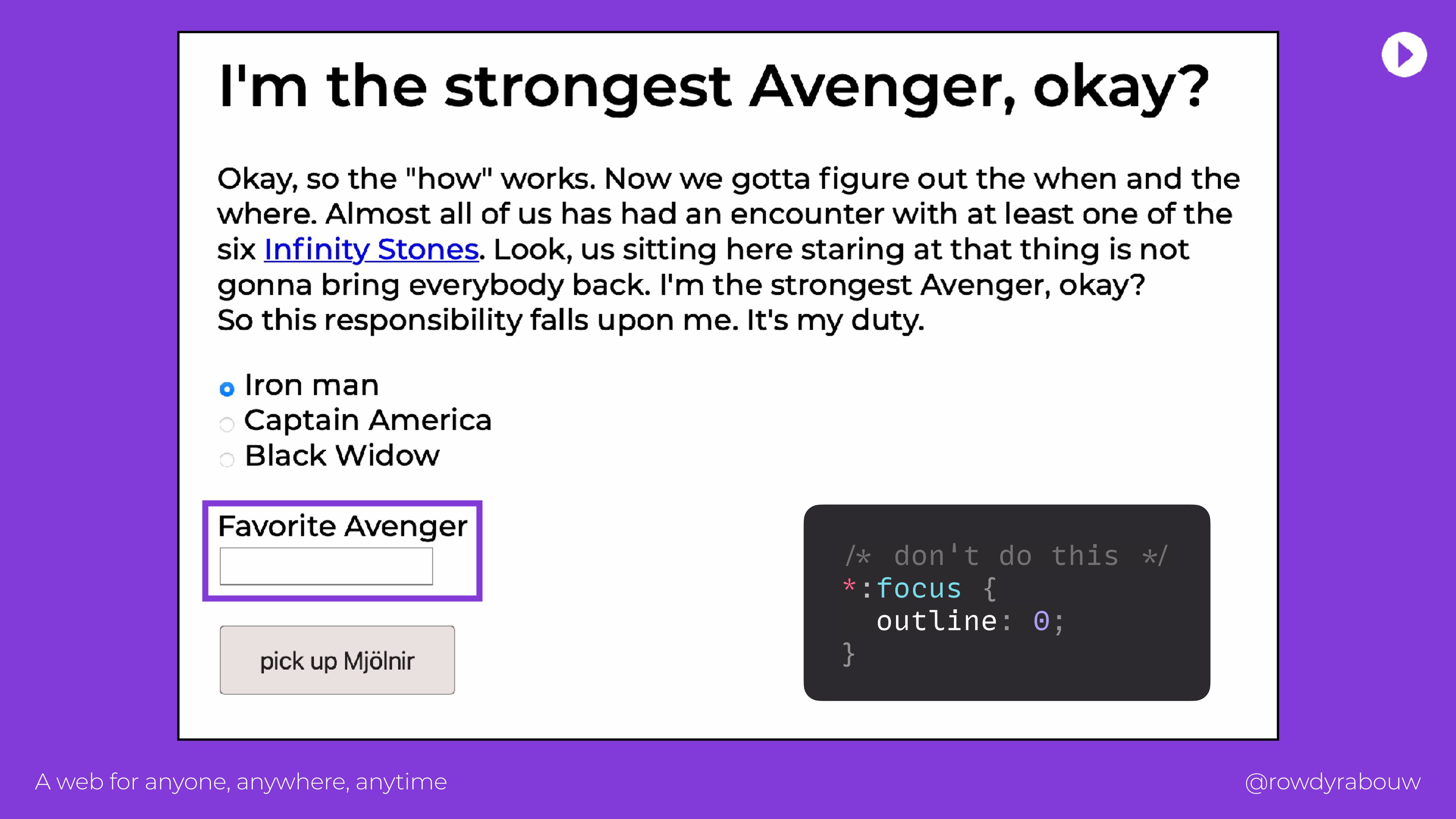 The web is designed to be accessible by default, but we developers made a mess of it along the way. We exclude a large group of people while the web is such an intrinsic part of our daily lives.