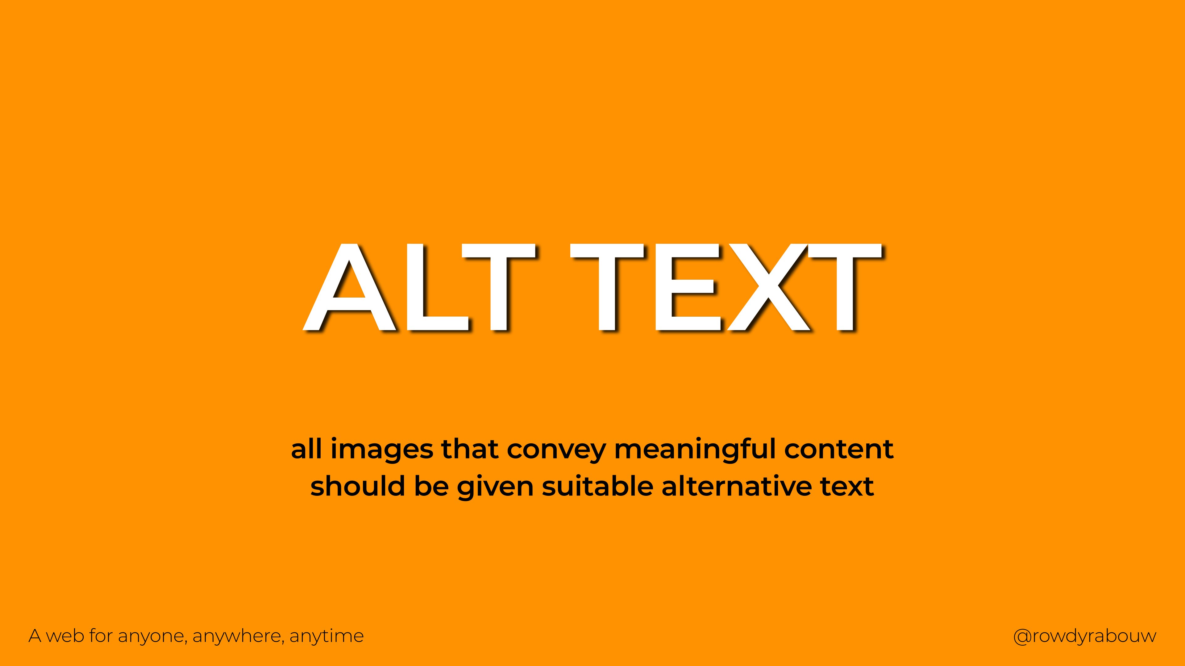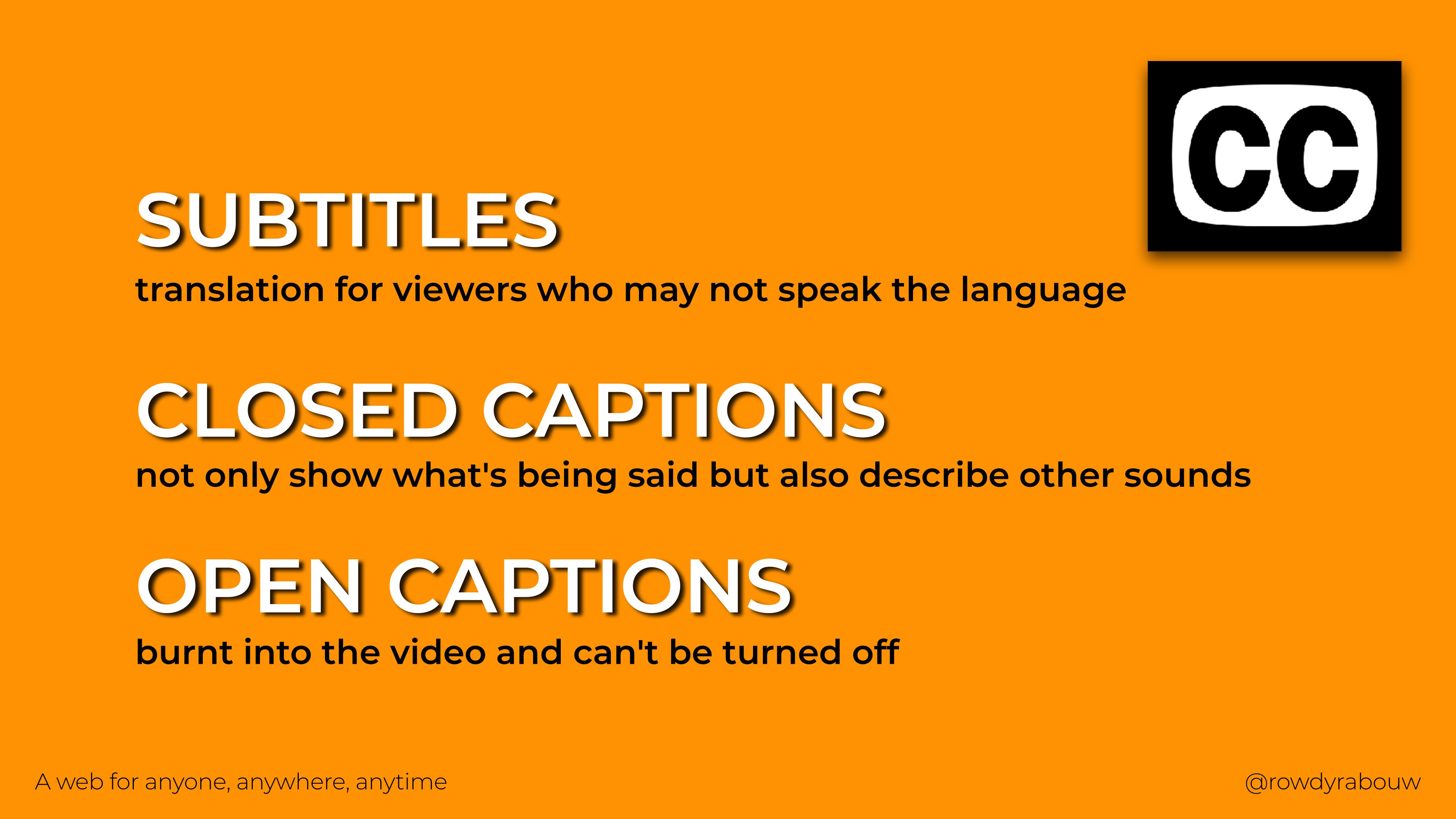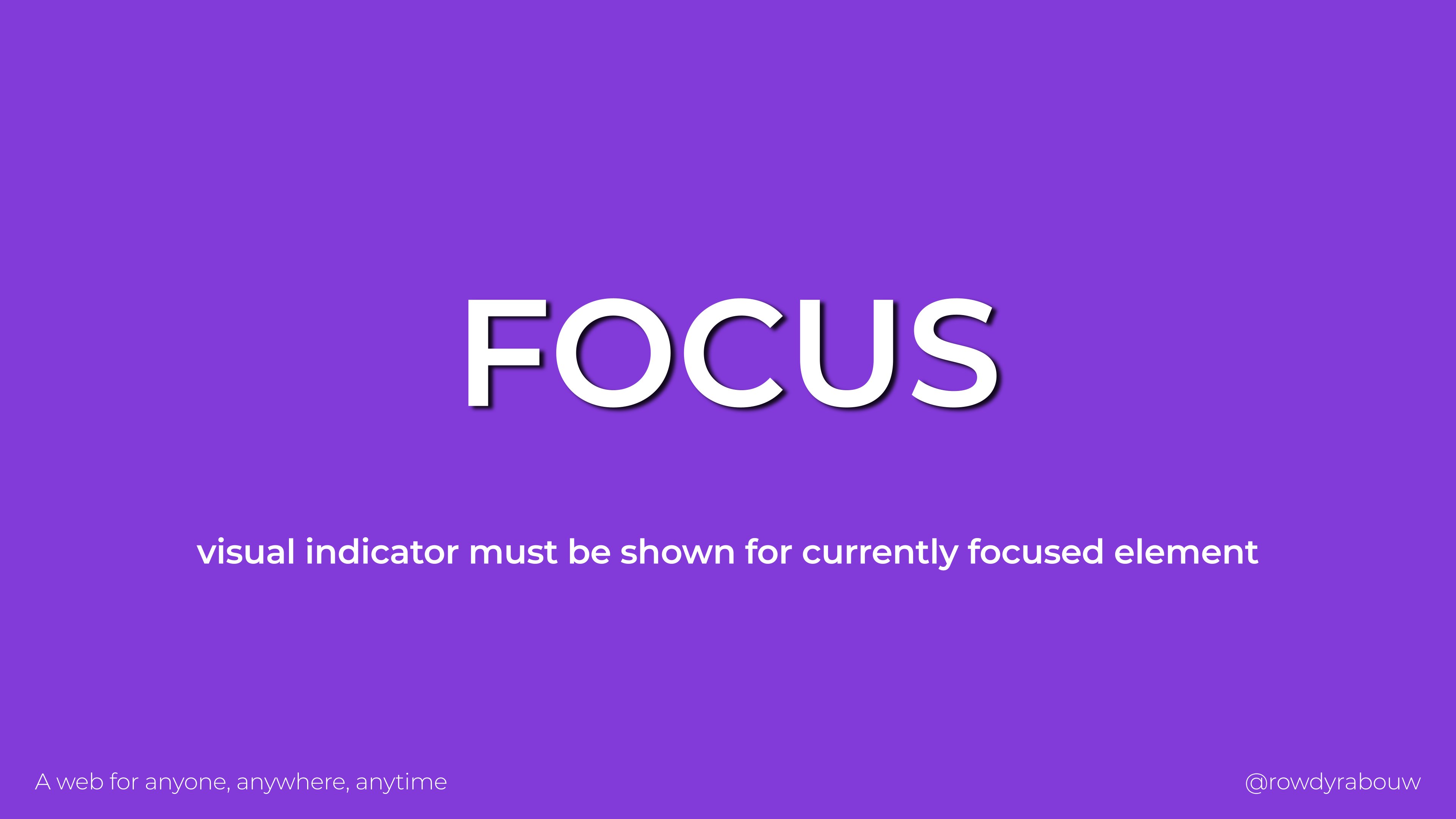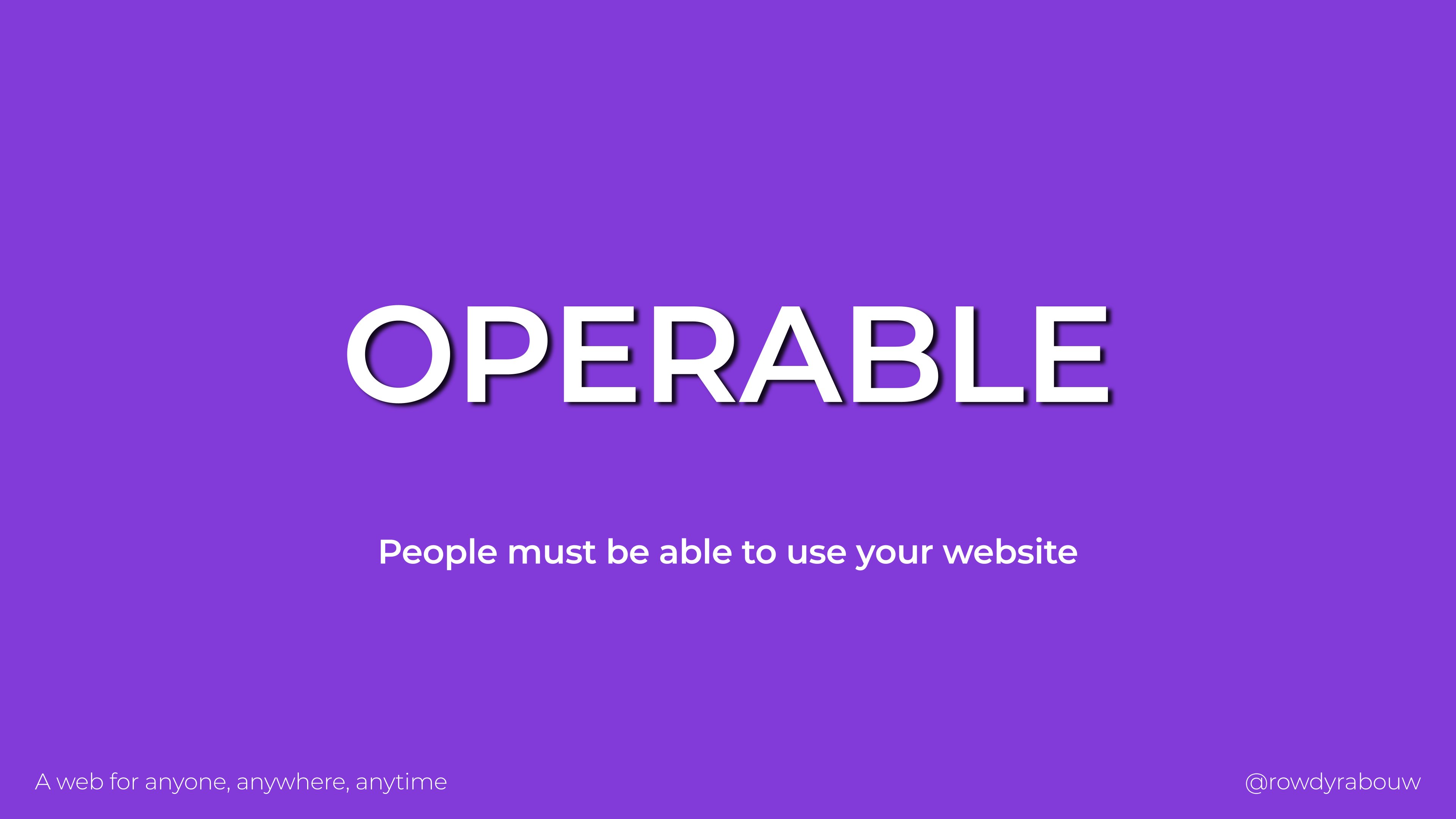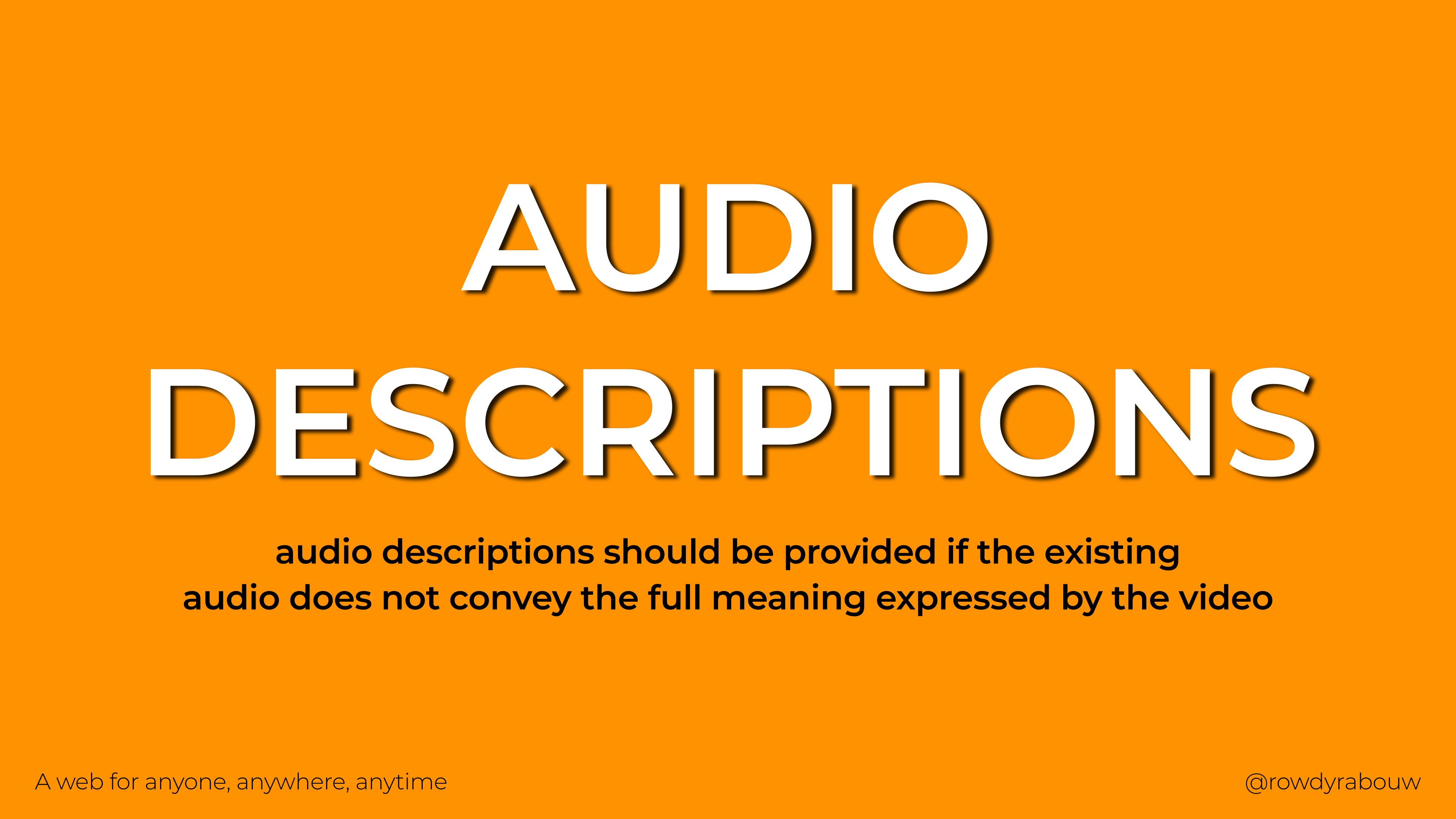In this talk, Rowdy will go over common mistakes and show solutions to improve your website for persons with disabilities. He will also show practical examples to make websites more enjoyable and usable for everyone, based on their current situation.