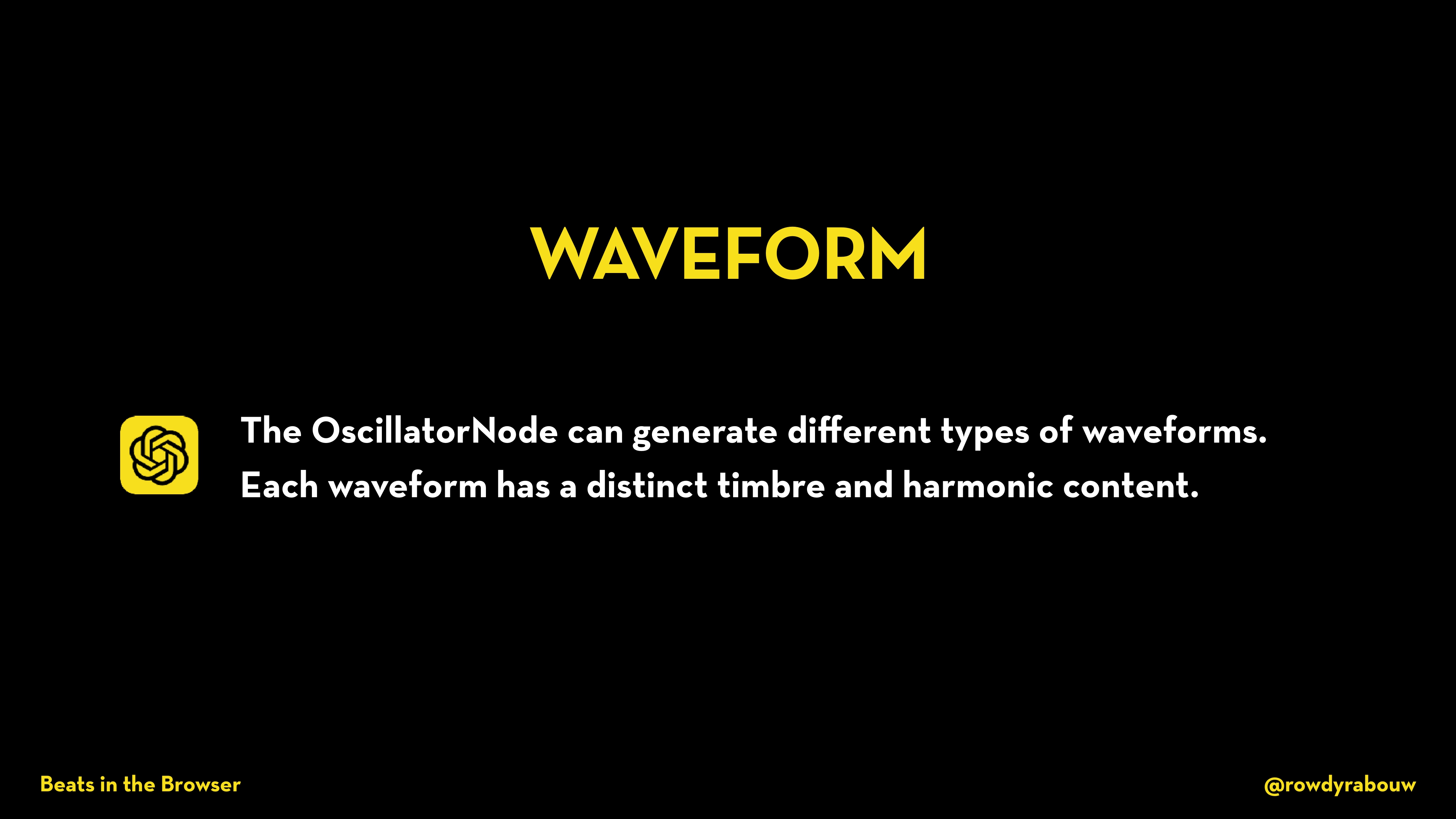 Javascript is extremely versatile. We use it to build frontend, backend, desktop and mobile apps. But did you know you can even create music with it ?!