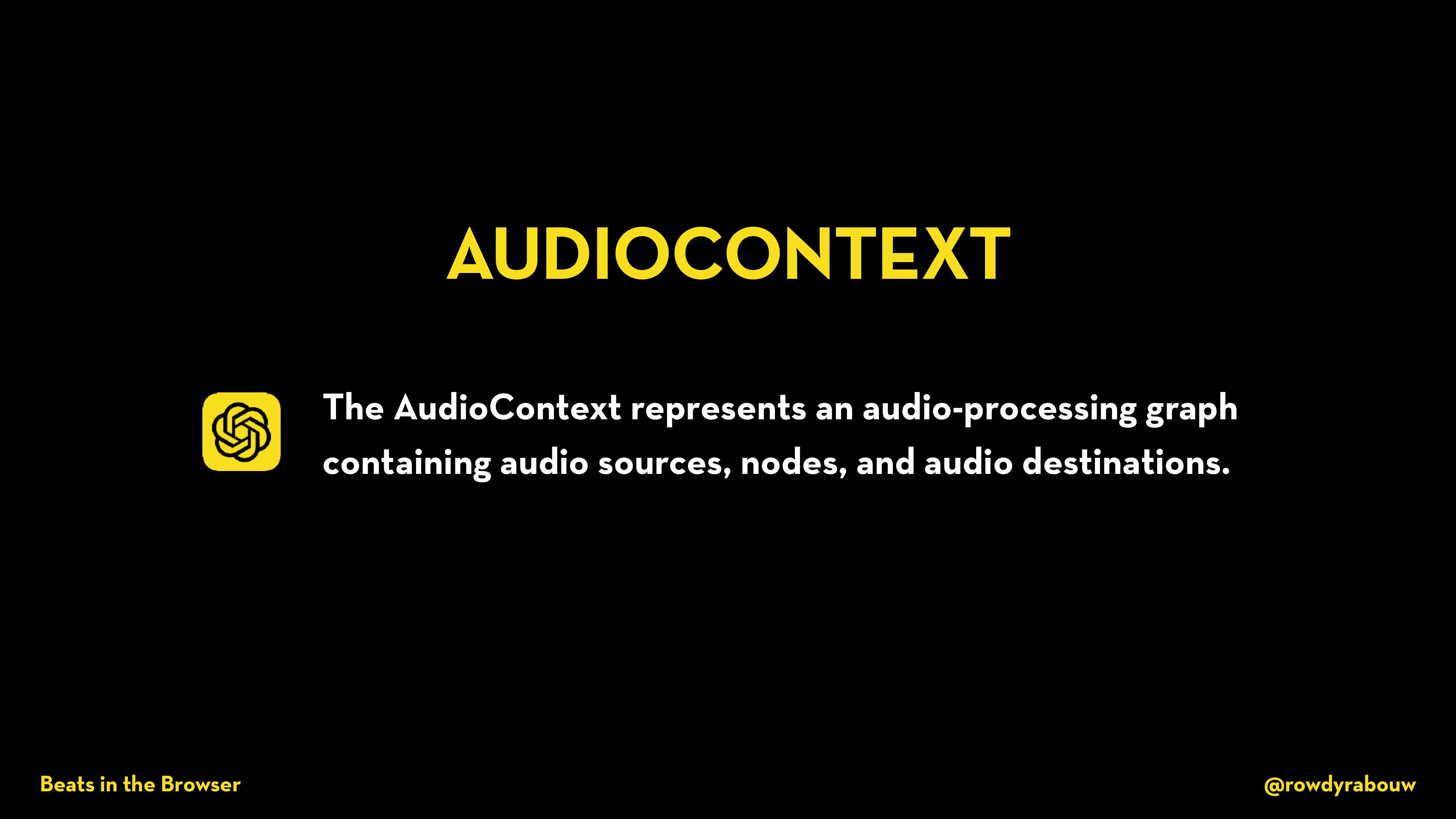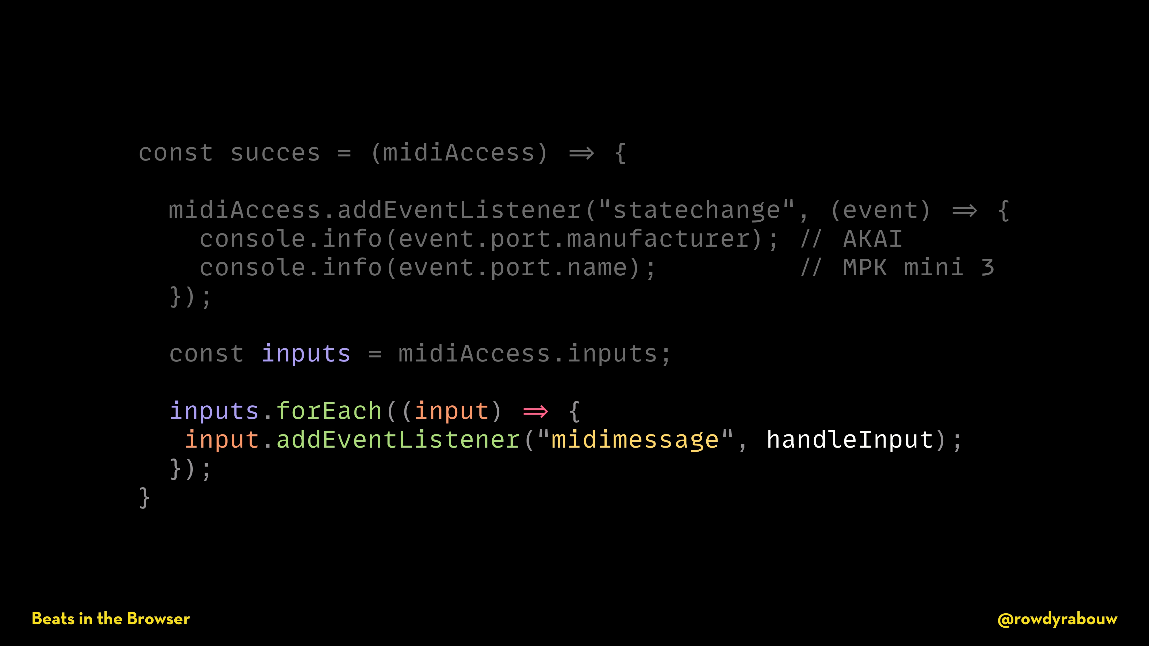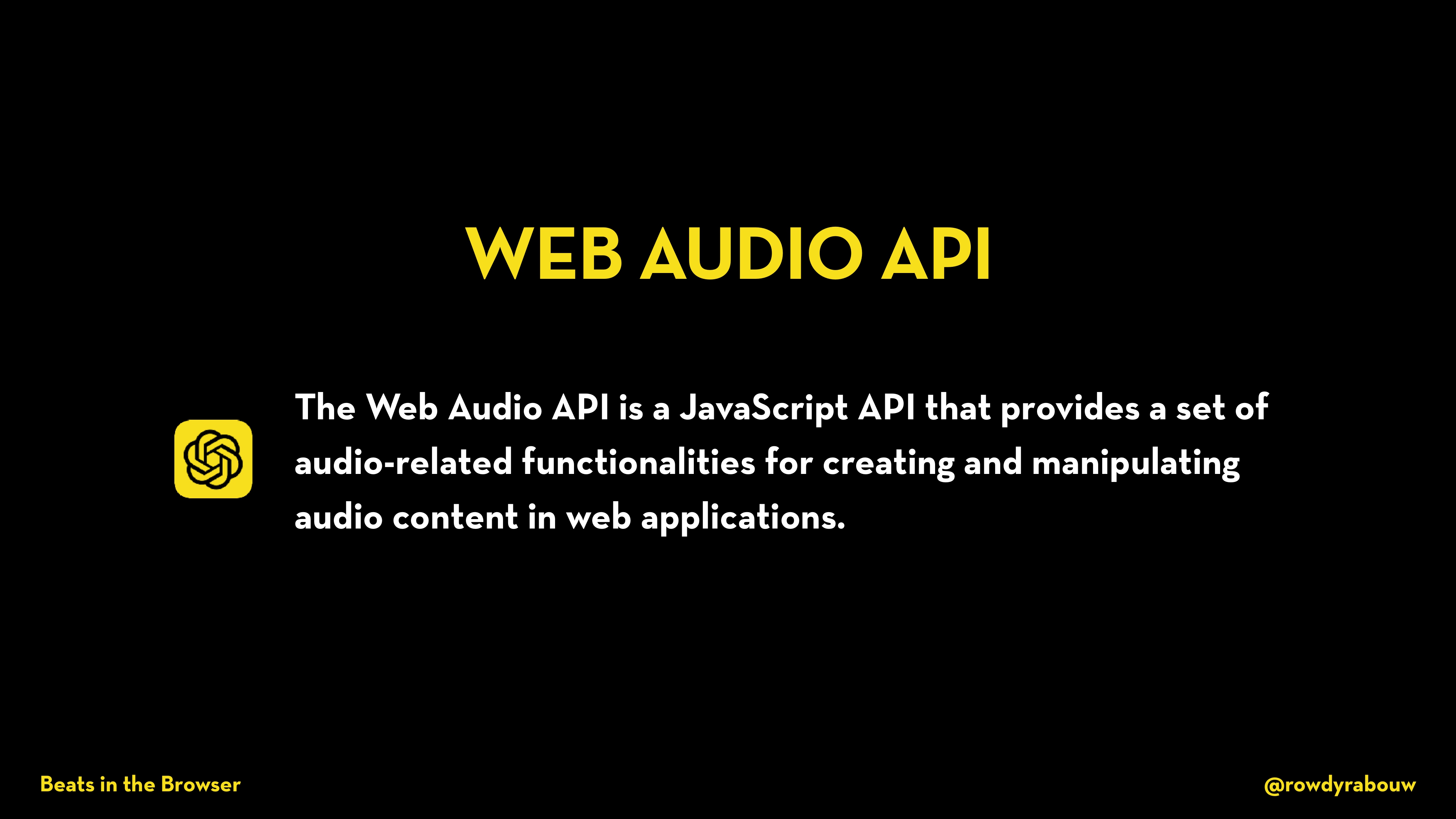 In this talk, Rowdy will show you how easy and fun it is to code your own music with the Web Audio API. As a bonus, he will throw in the Web MIDI API and Web Bluetooth API to really get the party started. Let’s turn up the bass!