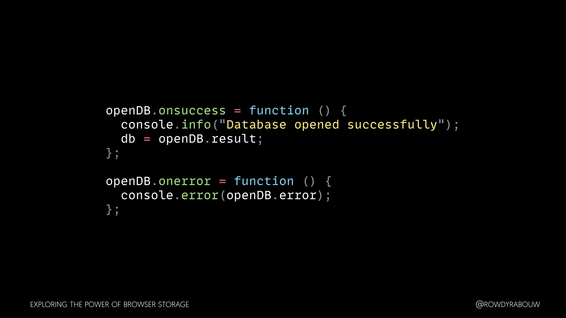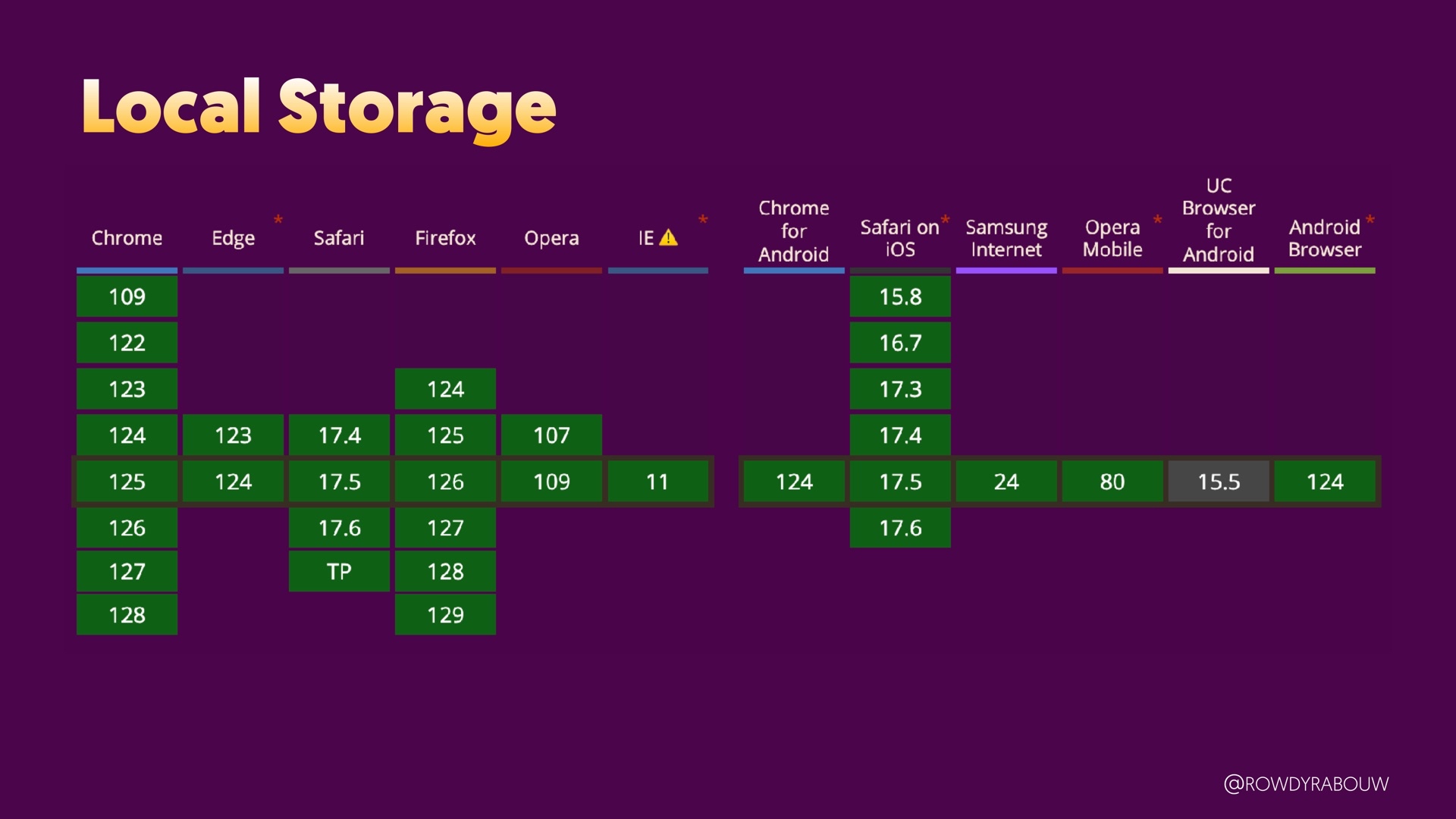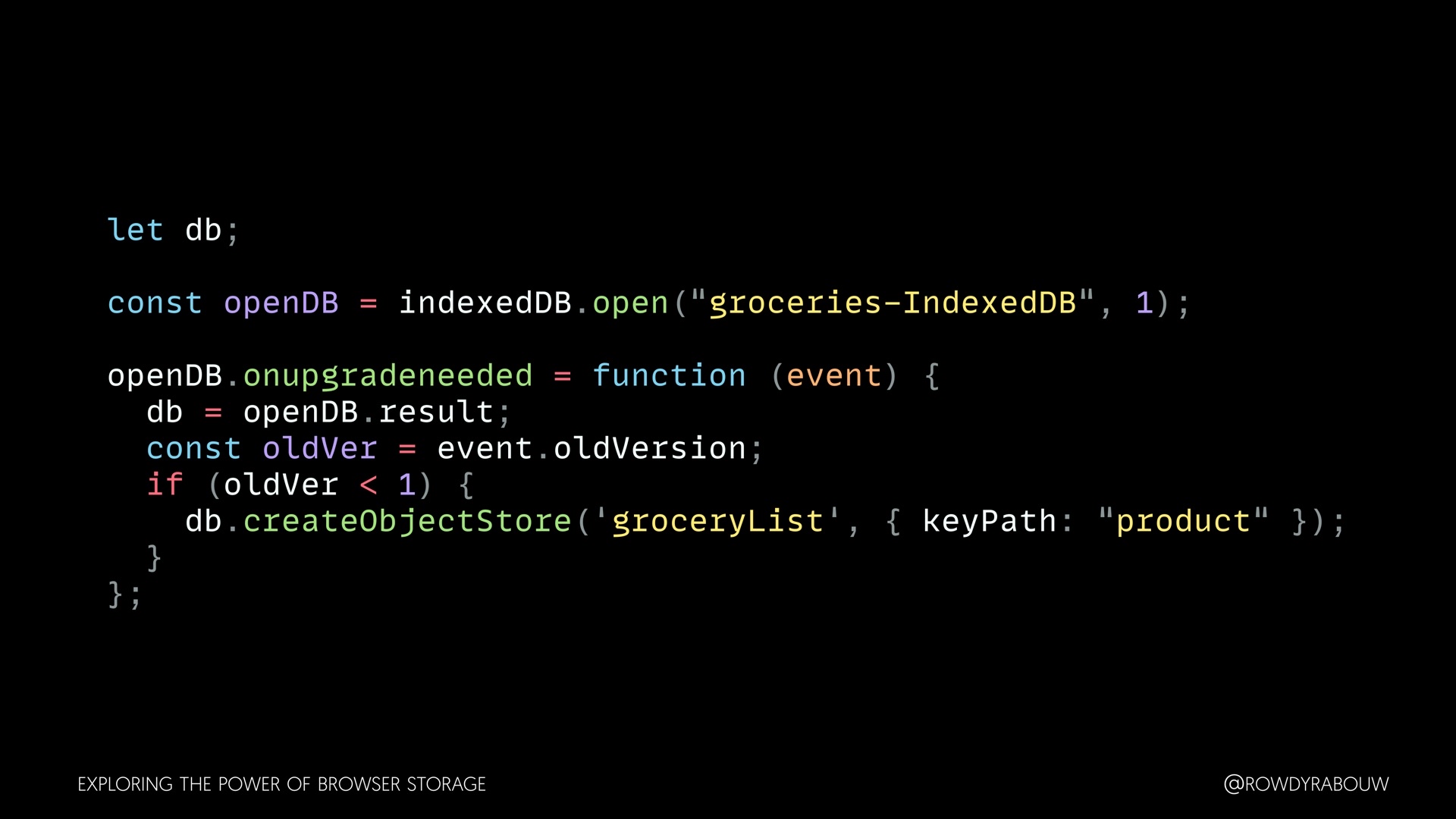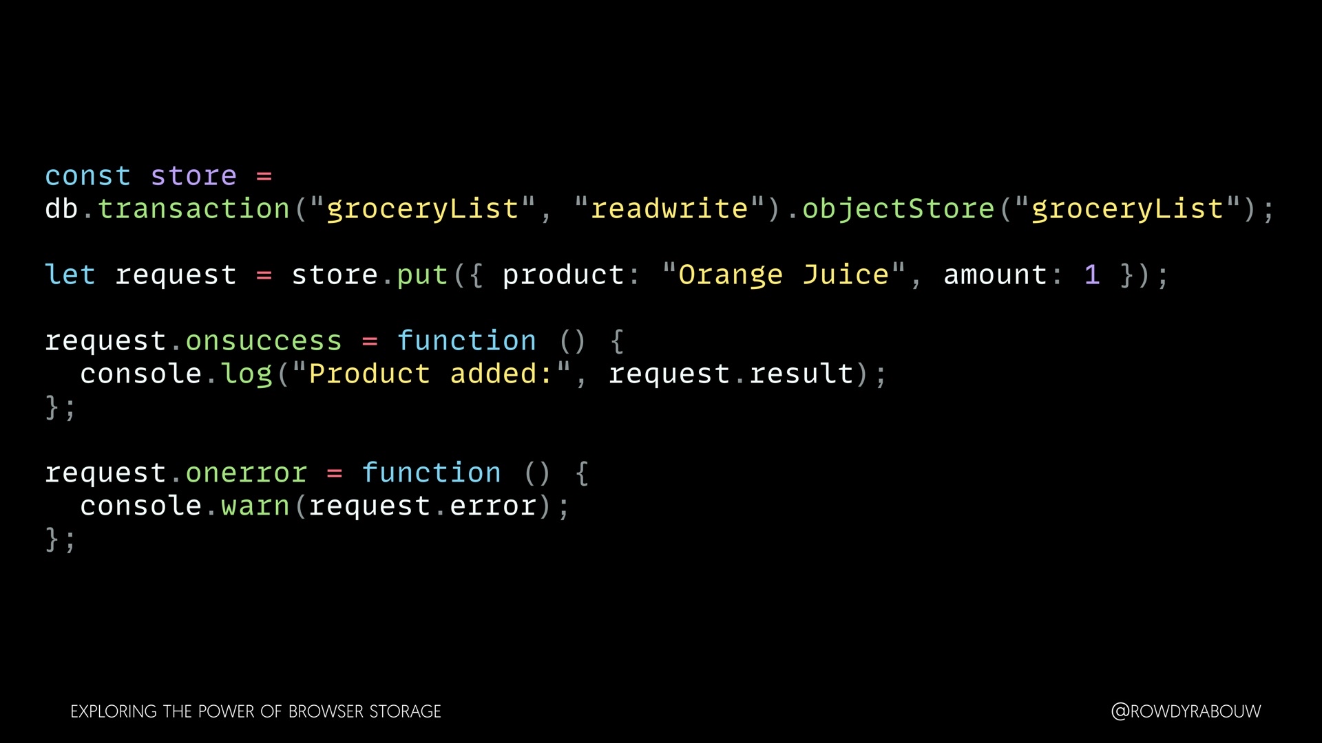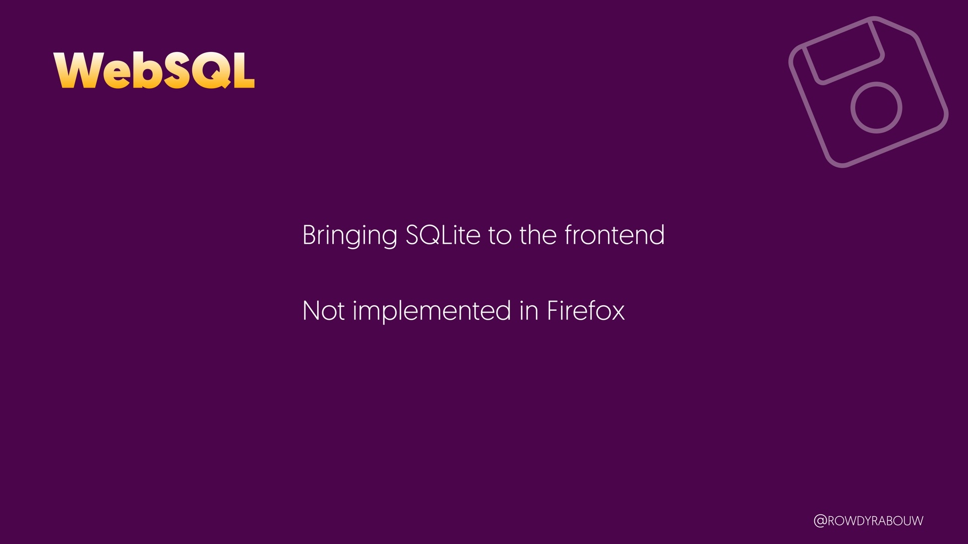 Join Rowdy for a comprehensive talk that will demystify the world of browser storage. In this presentation, we'll explore all the types of storage available to web developers and shed light on how each can be harnessed to enhance your web applications.