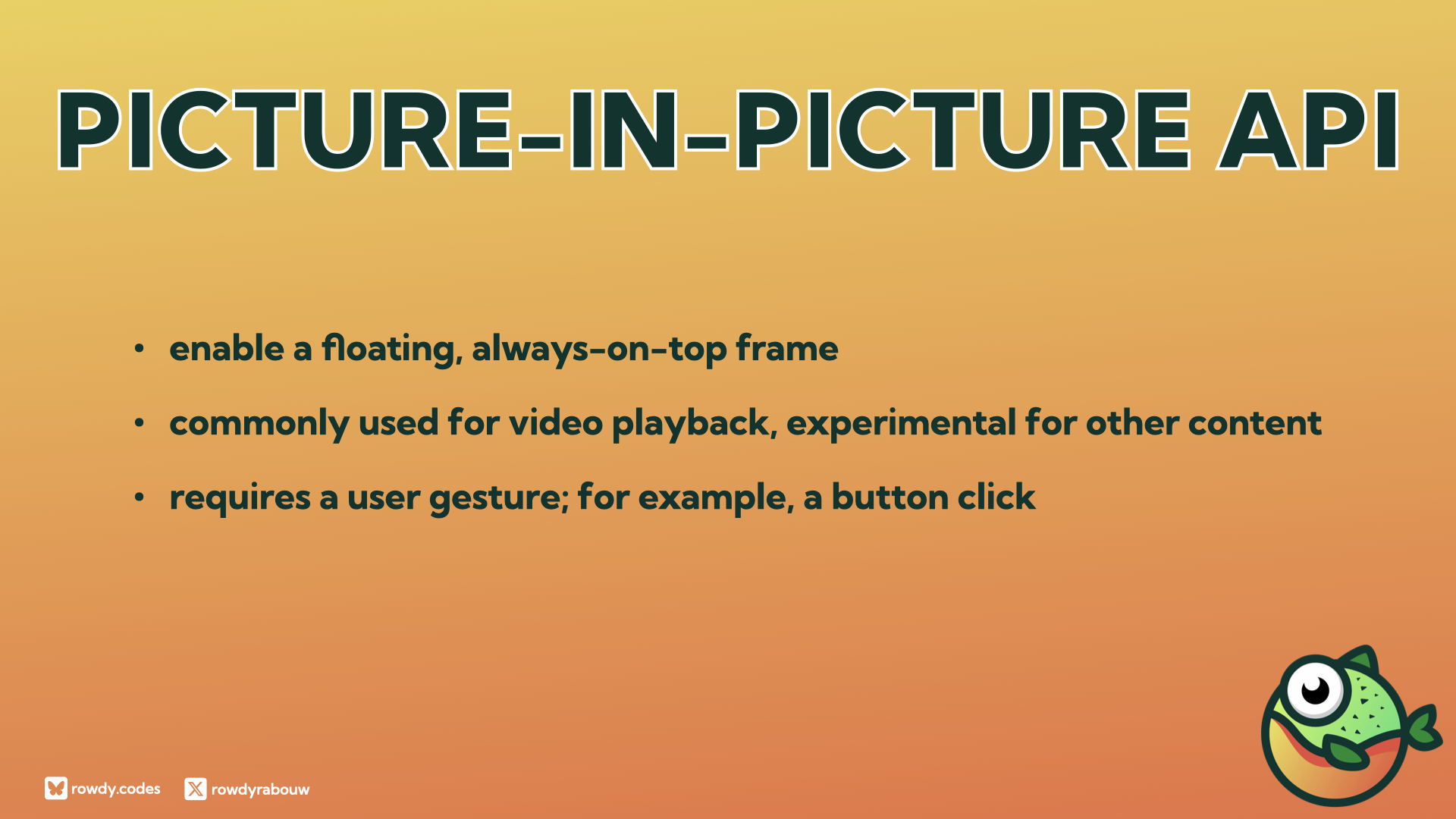 This session will explore how these innovations transform the web development landscape. Attendees will learn about APIs such as Clipboard, Picture-in-Picture, Web Share, Web USB, and Web Bluetooth.