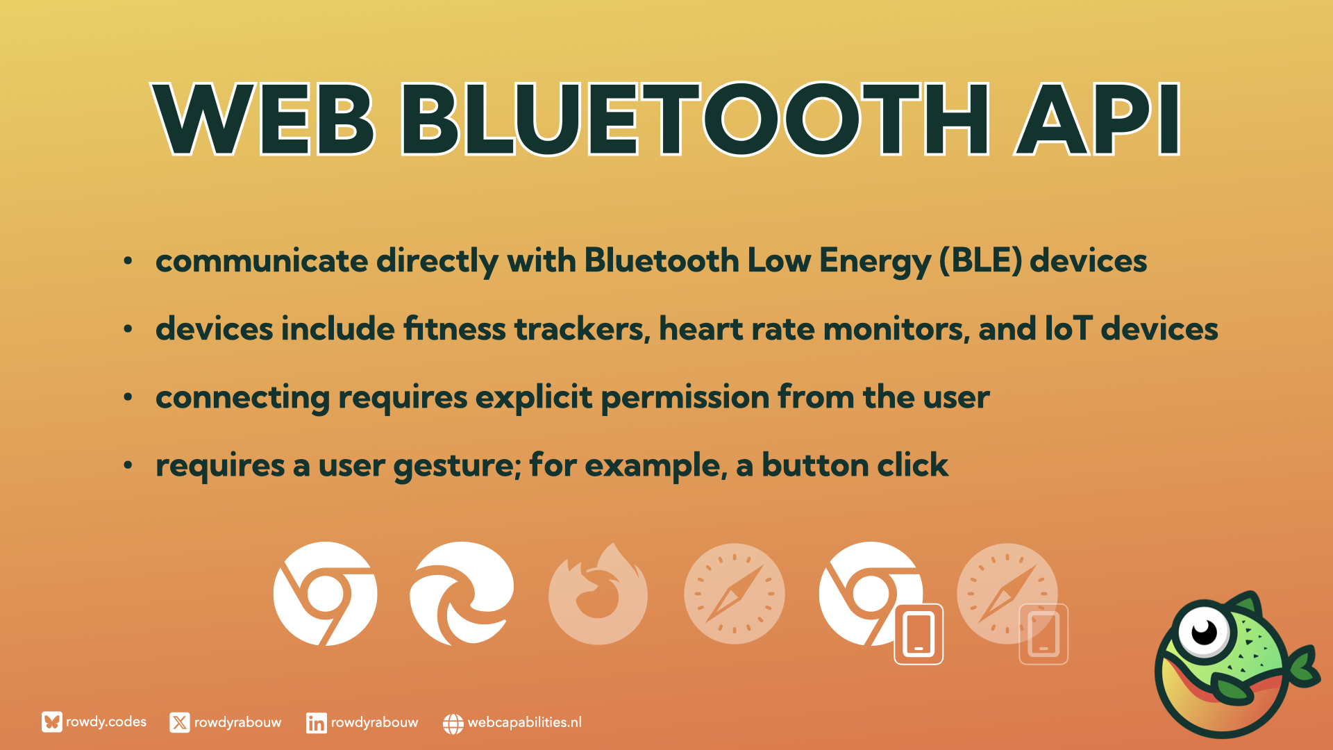 This session will explore how these innovations transform the web development landscape. Attendees will learn about APIs such as Clipboard, Picture-in-Picture, Web Share, Web USB, and Web Bluetooth.